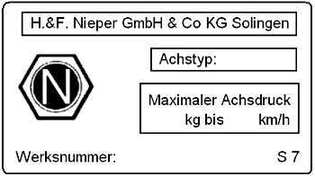 Wenn keine Typenschilder angebracht wurden die eingestanzten Daten.